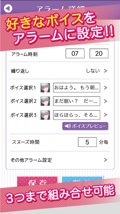 アラームでは好きなボイスを設定
