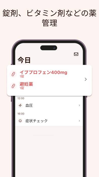 毎日の薬の摂取を手軽に管理できるアプリです。設定した時間に薬を飲むためのリマインド通知が届くので、飲み忘れるのを防げます。