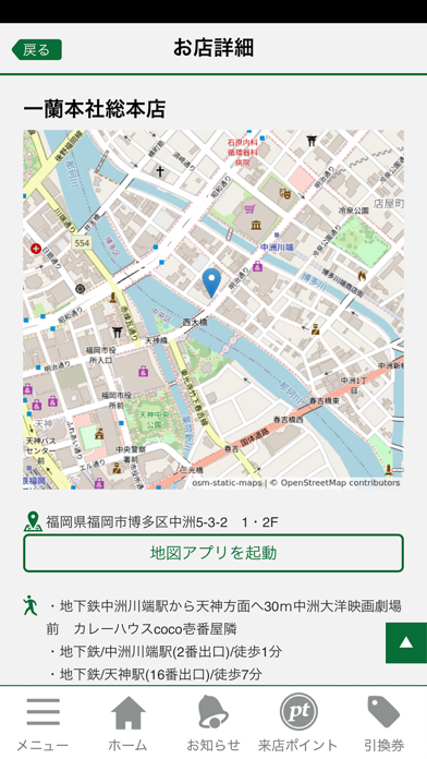 - GPS機能で現在地付近の店舗を検索。外出先でも一蘭が簡単に見つかる