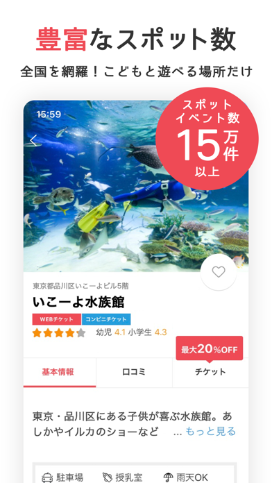 地方に住んでますが、かなりお出かけ場所のラインナップが豊富でいいです。近いところ順で表示されて便利ですし、イベント情報も得られたり、遊び場のクーポンもゲットできたりします。ランキングでどこに行こうかも参考にしてます。