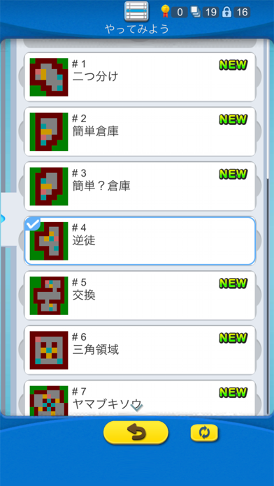 難易度が上がると荷物数は増えますが、大きな見た目の変化はありません。ストイックに解きたい人におすすめ。