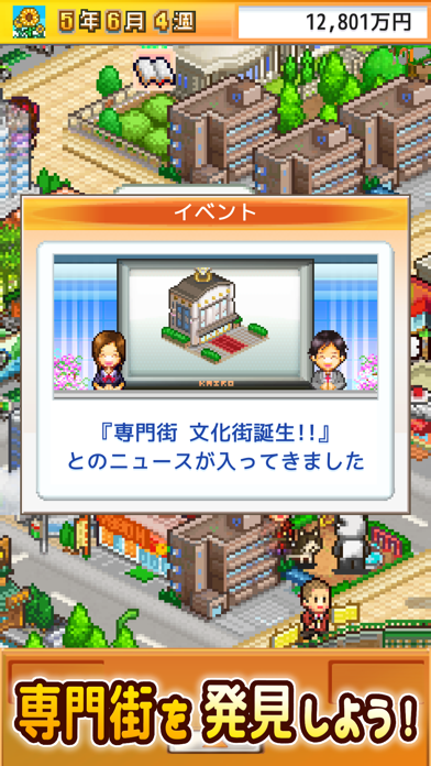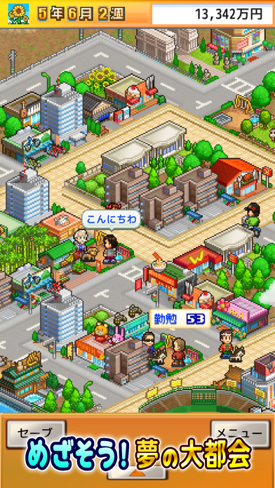 財閥の力で大都会形成をめざす、街づくりシミュレーションゲーム。住民たちが稼いだお金を使って、建物や産業を生み出し街を豊かにしていきます。花屋やゲームセンター、公園など建設できるものは様々です。