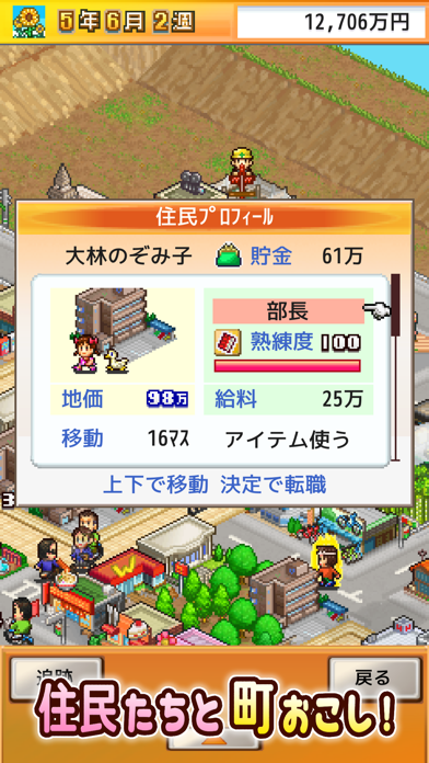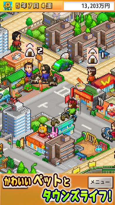 ▲街の様子を確認しながら建築や産業を増やす。住宅や公園、花屋やゲームセンターなど増やせる建物はさまざま。