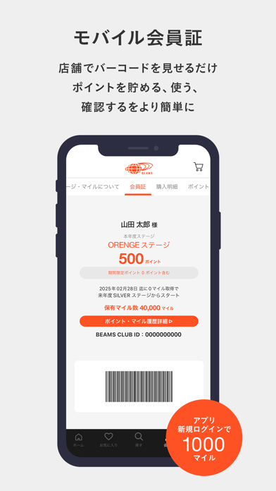 - 会員証機能搭載。BEAMSの店舗でスマートにポイントを貯められる