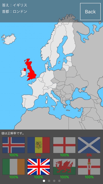ヨーロッパ、アフリカ、アジアなどのエリアごとに分けられています。練習モード、本番モードがあり、本番モードでは1問でも間違えるとゲームオーバーです。練習モードでしっかり予習していけば、地理マスターになるのも夢ではないかも。