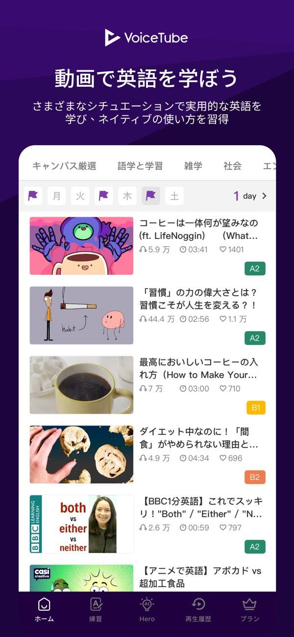最近使いはじめた。ガッツリ英語勉強するぞーって思ってやると飽きちゃうけど、これは面白い動画が多くて楽しめてる。発音(スピーキング?)がちゃんとできてるかチェックしてくれるのもいい感じです、ちょっと恥ずかしいけど。笑
