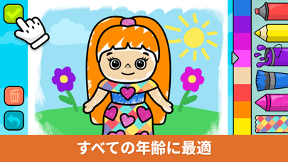 カラフルなイラストに好きな色をつけて遊ぶ、小さな子供向けのお絵かきアプリです。えんぴつやマーカーなど好きなブラシを選べる塗り絵。どうぶつやおとぎ話、水中などさまざまなカテゴリの絵を収録しています。きっと子供が夢中になってくれるでしょう。