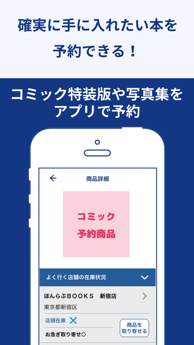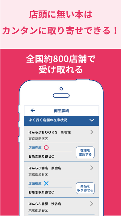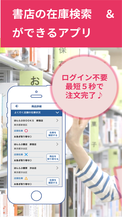 - 登録した書店や現在地付近の書店の在庫状況を確認できるアプリ