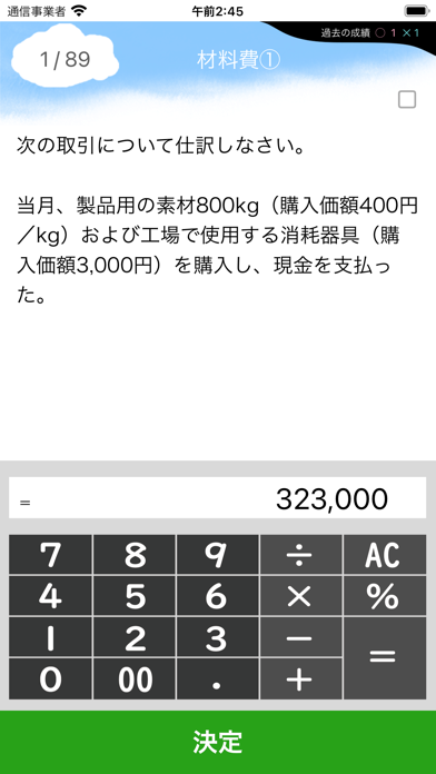 過去問分析に基づいた仕訳問題で、実践力を身につけられます。選択形式で実際に仕訳をしていく形式。間違えたときもすぐに解説をチェックでき、不明点を放置せずに学習を進められます。「この問題なら解ける!」と自信を持って試験に臨めますよ。
