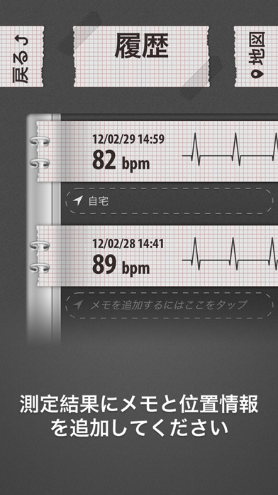 iPhoneのカメラを使った心拍数を計測、記録できるアプリ。