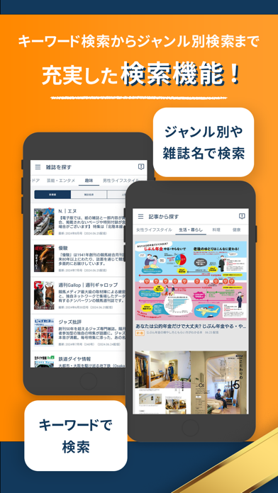 - 読みたい雑誌を検索で見つけられる。電子書籍サービスならではの利便性