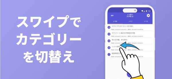 - スワイプでカテゴリー切り替え。目的のカテゴリーのメモだけを見られる
