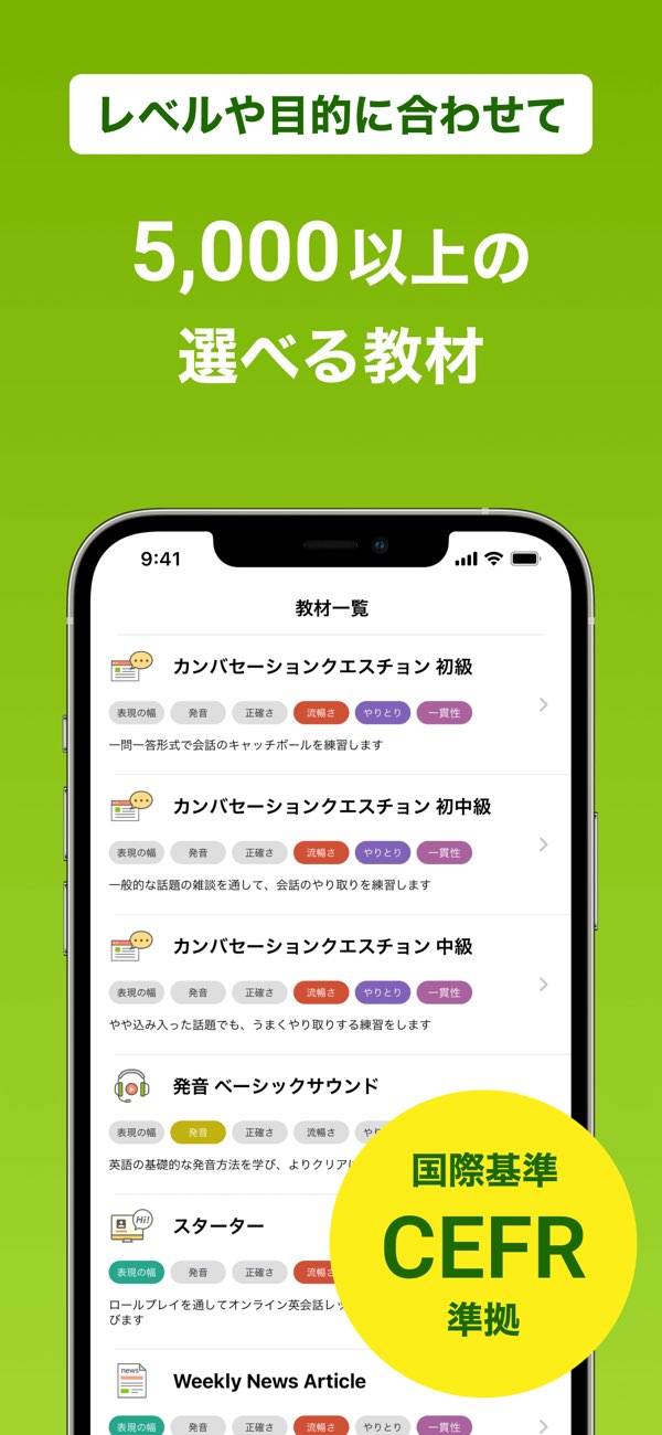 あなたの英会話力を測定し、具体的な学習アドバイスをくれるアプリ。6,000人以上の講師から最適な相手を選んでレッスンを受けられます。自己学習機能で自分のペースで学べる点も魅力的。忙しい日々の中で気軽に英会話を学びたい人におすすめです。