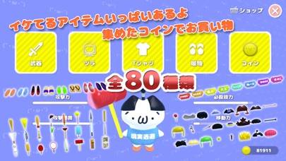 武器は、エビフライや大根、サバ等様々。ヅラや靴等の装備品を合わせると、全80種類あります。好きな装備品で冒険を楽しんでくださいね。