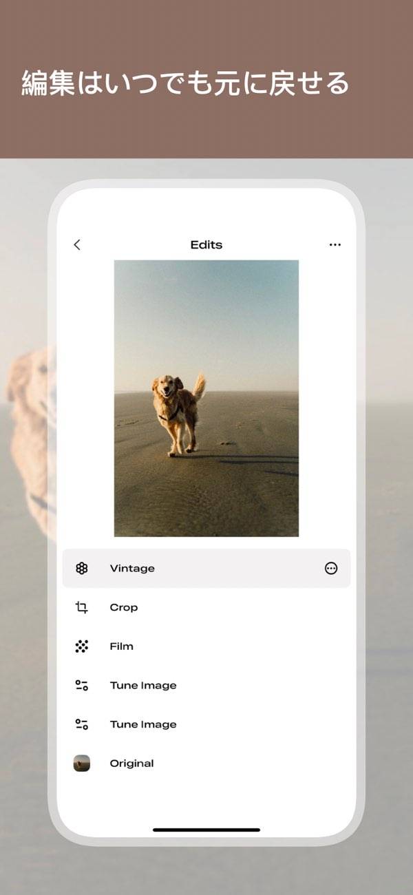 かなり細かく調整可能な写真加工アプリ。ざらざらの粒子加工、グランジ、ヴィンテージなど、いろいろなフィルタが揃っている。細部まで細かくこだわりたい人向け。