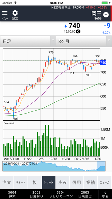 • 複数の指標を表示して、値動きをより詳しく分析できる株取引アプリ
