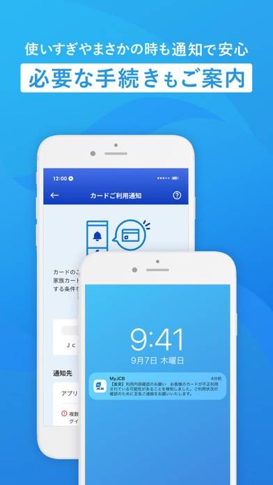 - 盗難などの不正利用を即座に知らせ、安心・便利なカードライフをサポート