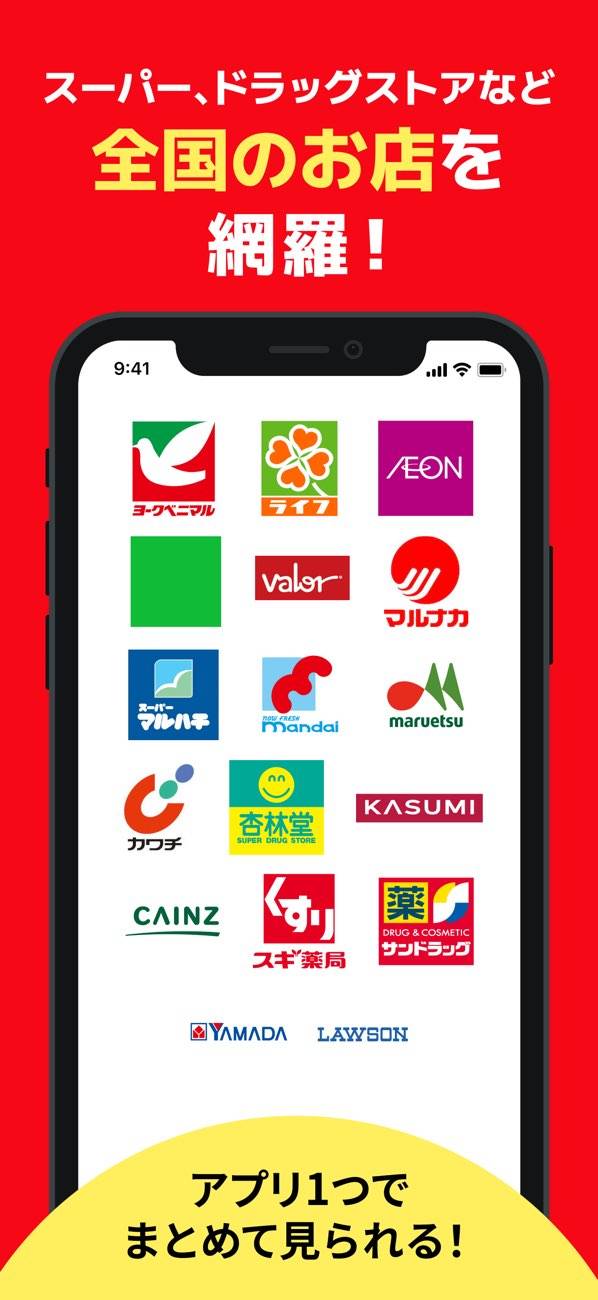 - 近所にあるスーパーのお得な安売り情報を、チラシで見られるアプリ
