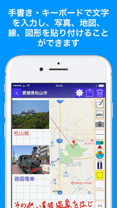 写真、地図などの貼り付けや、メモの入力、手書き入力を簡単な操作でできるようにしました。