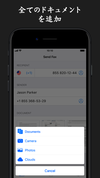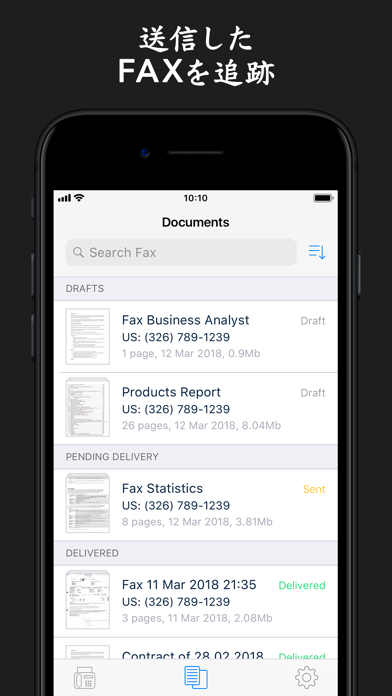 自分と受信者の電話番号を入力するとFAXが送れるようになります。電話帳と連動して使えるため。登録済みの番号はすぐに呼び出せるのが特徴。本アプリを使うことで自宅や出先など、FAXが手元にないときでもデータの送信ができるようになります。