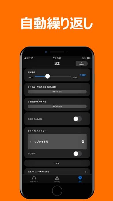 - 再生速度調節や区間リピート、字幕のカスタマイズが可能