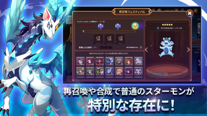 人魚、けもの耳の美少女型のモンスターも登場。かわいい見た目に愛着がわいてきます。捕獲のほかガチャでもスターモンが手に入るので、気になる子がいたらぜひ引いてみてください。