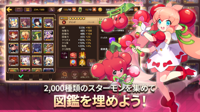 可愛いスターモンというモンスターを捕まえて育ててリーグバトルに参加するというゲーム。スターモンみんな可愛いのに攻撃は派手でド迫力です!どのスターモンも最高ランクまで育てることができるから、気に入った子と一緒に戦い続けられるのは、こういうゲームでは珍しくて嬉しいです♡(ӦvӦ。)