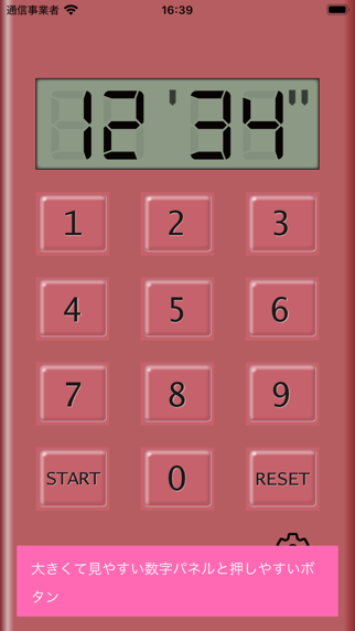 見やすさ重視のデジタルキッチンタイマーです。アプリ画面を閉じても時間になったら音と振動で知らせるので、時間を忘れていても安心。