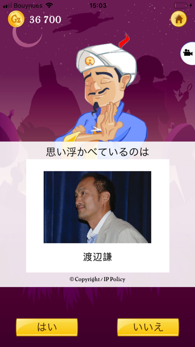 ▲思い浮かべた人物やキャラに対して、魔人の質問を答えるだけ。思い受かべたキャラを当てられたときは感動する。