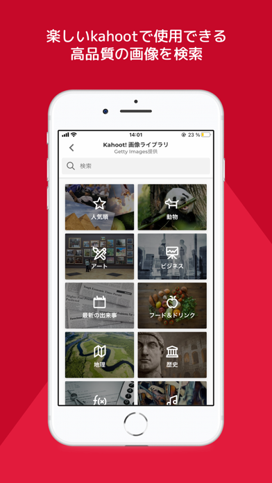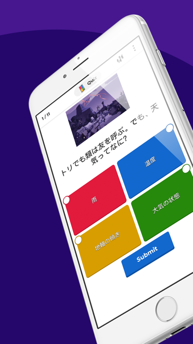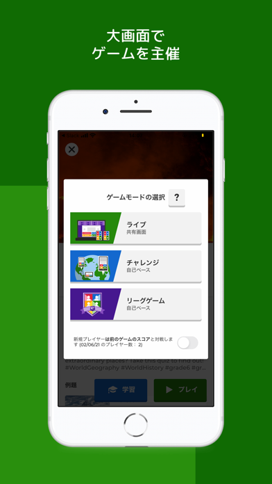 語学・計算・雑学など複数ジャンルのクイズを最大100人で楽しめます。早く回答した人順にポイントが割り振られ、順位を競って遊べるのが特徴です。