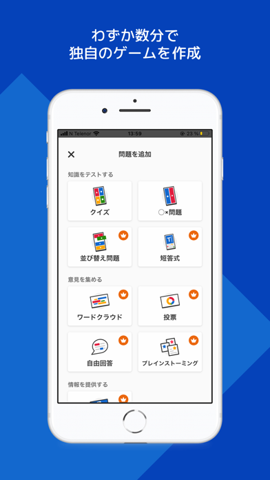 ○×クイズや4択クイズなど回答形式を選択して問題を作れます。無料で10人までのグループを作れるため、家族や友達と遊ぶには充分。それ以上の人数を集めてクイズを楽しみたい人は、課金をすると参加人数の上限を増やせます。