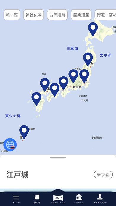 江戸城や富岡製糸場など、日本全国の史跡を40か所以上掲載しています。また小江戸甲府ぶらり散歩といった「スタンプラリー」モードもあるため、楽しく町歩きができるでしょう。