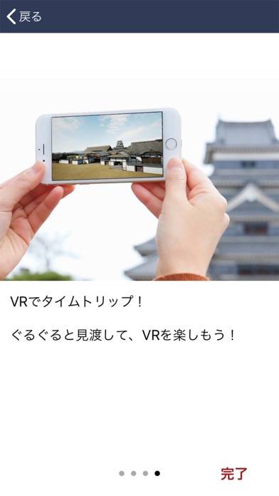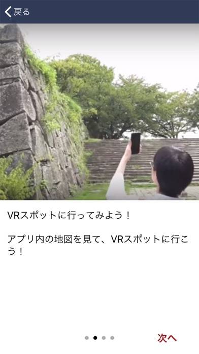 VRボタンをタップすると、高精細かつ色鮮やかなVR映像を見られます。史跡VRを背景とした記念写真撮影も可能。一度体験したVRコンテンツは、旅行を終えた後も楽しむことができるため、収集意欲も高まるでしょう。