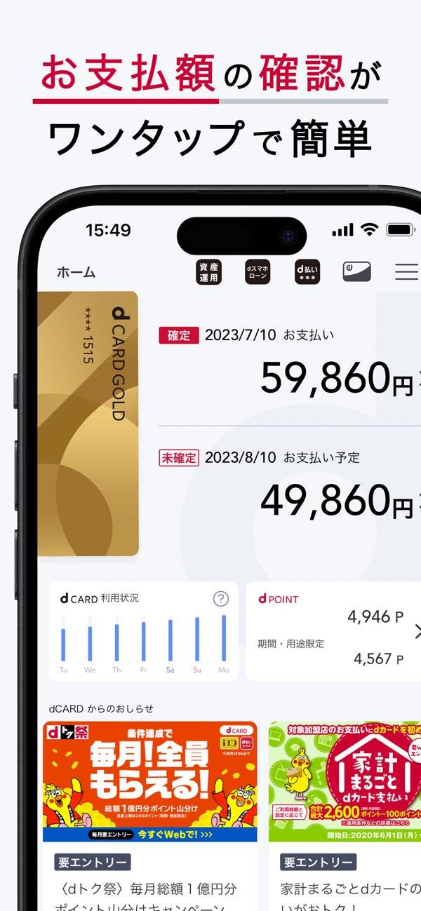 dカードの持ち運び不要 支払額の確認もその場で手早く