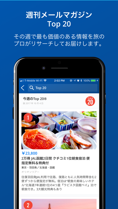 本アプリでは週刊メールマガジンが発行されています。このメルマガはアプリ内で読むことができ、プロがリサーチしたその週のTOP20の情報を閲覧可能。Travelzoo編集部が独自にリサーチした情報をもとに書かれているので、ここだけの情報をGETできるでしょう。
