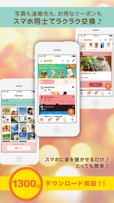 - Zeeという音でアドレスや写真・クーポンなどを交換できるアプリ