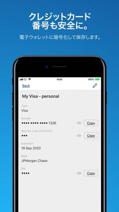 個人情報を高いセキュリティで保護するために設計されたパスワード管理アプリです。AES-256暗号化技術を採用しており、政府や軍隊が使用する高度なセキュリティを利用可能。さらに、強力なパスワードを自動生成する機能や、独自の安全なブラウザを使えます。