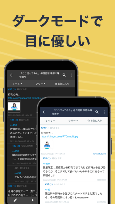 2ch閲覧アプリ。使いやすい、機能が豊富、インターフェースもスタイリッシュ。一部の板が除外されてるけど設定で簡単に追加可能。ただ設定方法が分かりにくいので調べる必要有り。