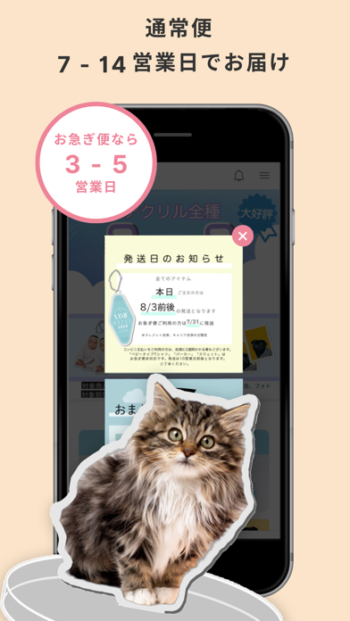 本アプリでは、すべての商品が1個から発注できます。ほかのグッズ作成サービスの中には、10個以上、30個以上など、最低注文数が決められている場合も少なくありません。そんな中、1個から注文できて気軽に利用できるのは、大きな魅力です。
