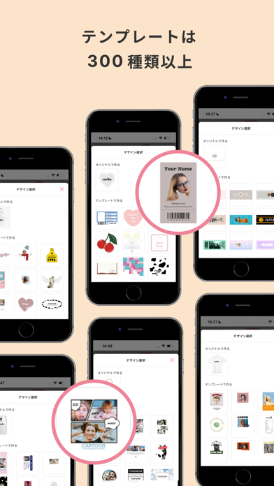 さらに、豊富なデザインテンプレートとスタンプが用意されています。これらを使って、自分の好きなようにアイテムをカスタマイズできます。あらかじめ画像や文字の配置などのデザインがある程度決まっているので、初めての方でも作りやすいでしょう。
