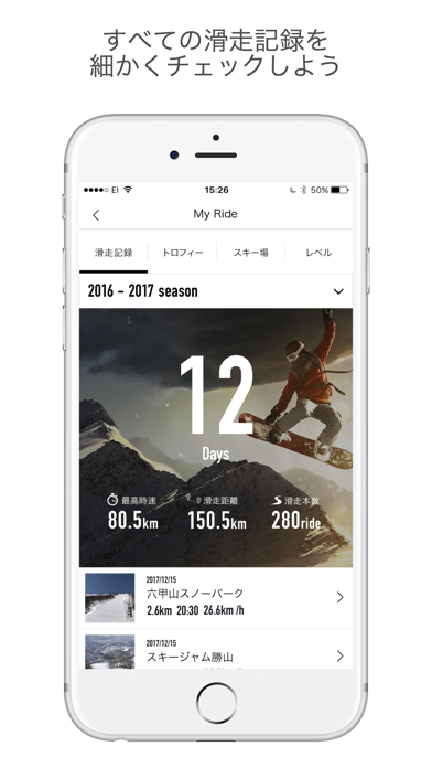 タップひとつで記録スタート スキーライフを振り返り&シェア