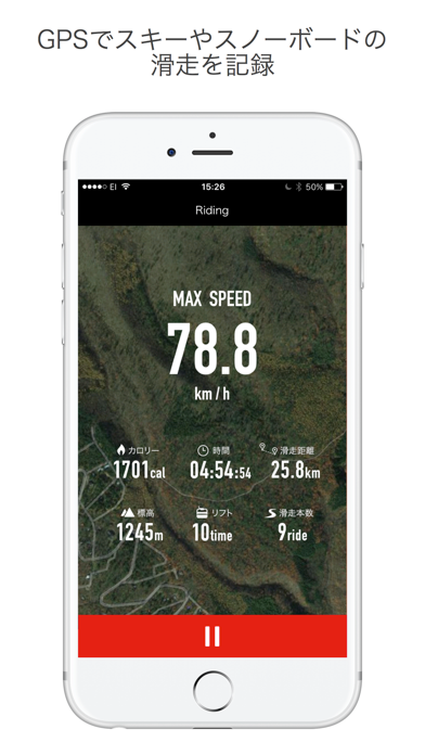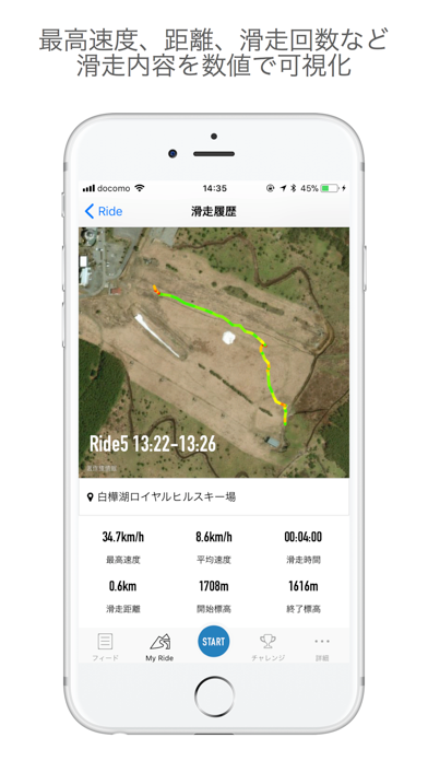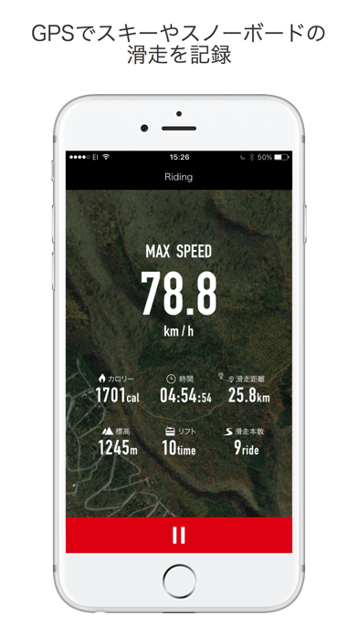- スキー場で滑ったコースや最高速度を、ワンタップで記録できる