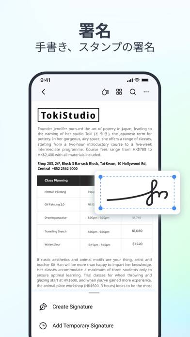 快適な操作性が魅力のPDF編集アプリです。取り消し線やハイライト表示、付箋を使った注釈の挿入など、ノートに書き込む感覚でPDFを編集できるのが特徴。