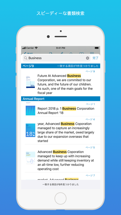 いつでもどこでもPDF文書のダウンロードと閲覧が可能。文書内のテキスト検索機能も搭載し、必要な情報をサッと見つけられます。忙しいビジネスシーンにおいて、この検索の手軽さは作業効率を大きく向上させるでしょう。