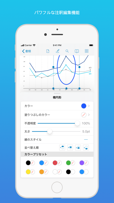 画像挿入や書き込みなど多様な編集機能のあるPDFビューアプリ。テキスト検索機能やズームアップ機能で文書を素早くチェックできます。文書に注釈や署名も入れられて便利。新しい文書の作成も可能。