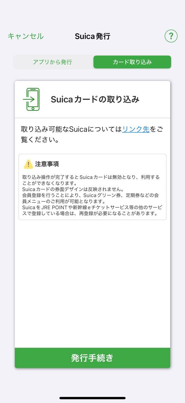 ①ホーム画面の「Suica発行」から会員登録を始める。