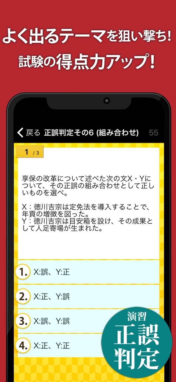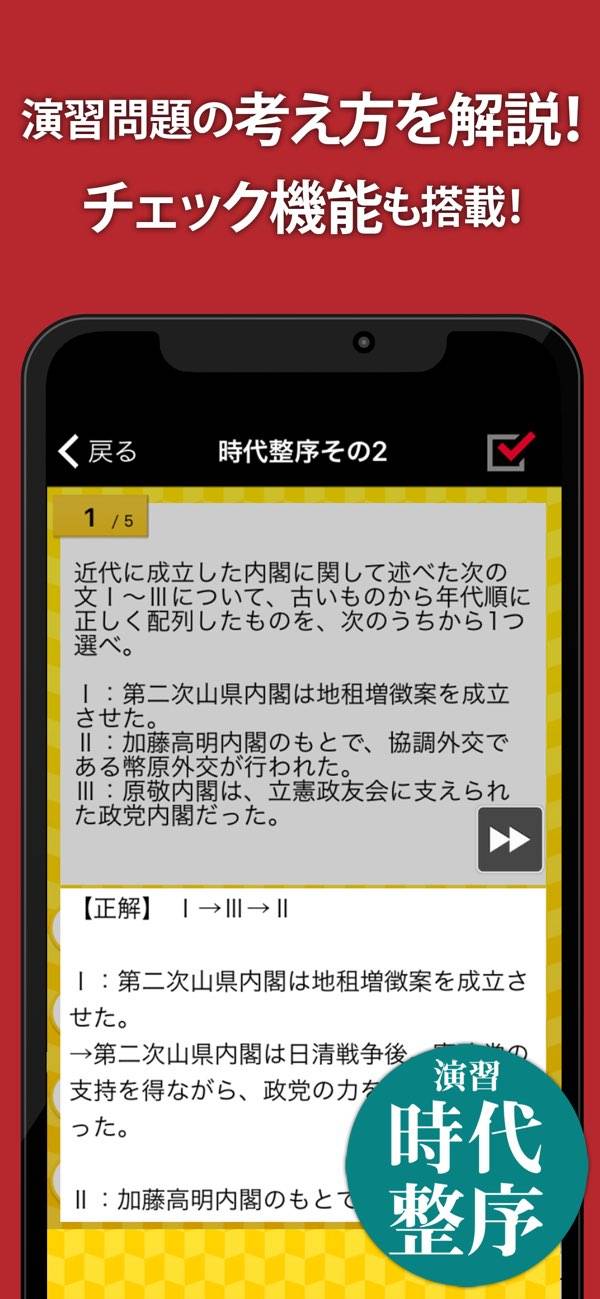 日本史の基本用語から入試レベルの演習までをまとめて学べる問題集アプリです。
