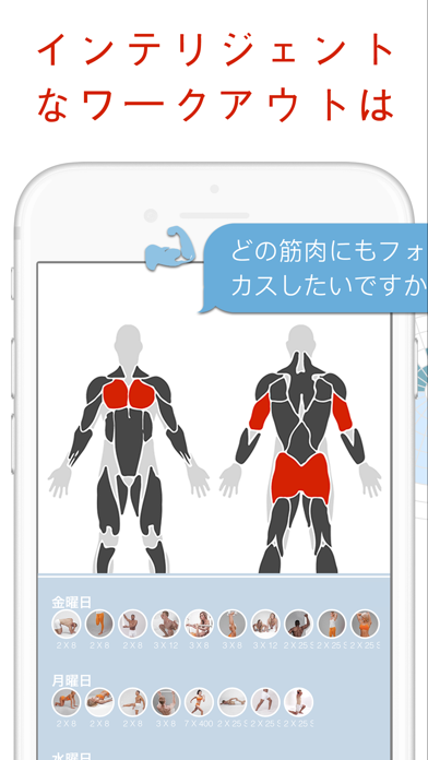 トレーニングプランや運動頻度を管理してくれるボディメイクアプリ。目的や現在の体重、ライフスタイルを入力すると、アプリ側があなたに合った運動プランを自動で生成してくれます。