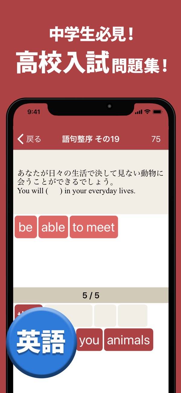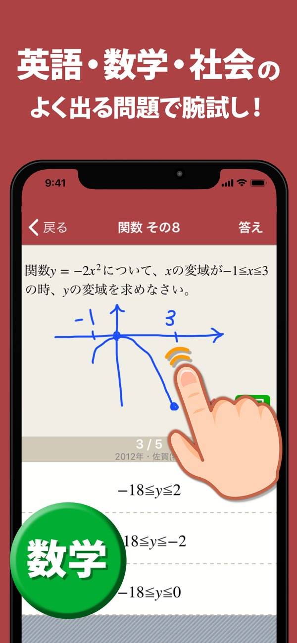 英語・数学・社会の高校入試の過去問が揃えられたアプリです。基本から重要問題まで幅広く収録されており、その数は2,000以上。4択問題で出題されるものが多く、電車の中などちょっとした時間に勉強できます。