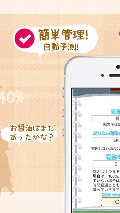商品名と、”あとどれくらいもつか”を入力して登録しておけば、あとはアプリが自動で減り具合を計算。%表示で、あとどれくらい残っているかを教えてくれます。
